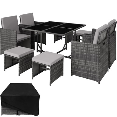 • Rottinki-puutarhakalustesarja Bilbao 4+4+1 suojapeitteellä varustettuna