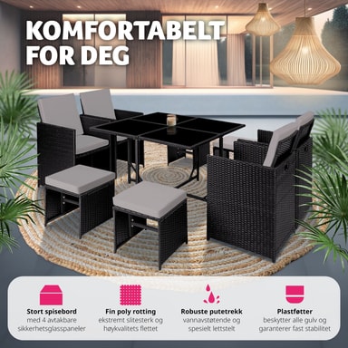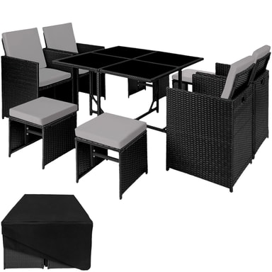 Rottinki-puutarhakalustesarja Bilbao 4+4+1 suojapeitteellä varustettuna