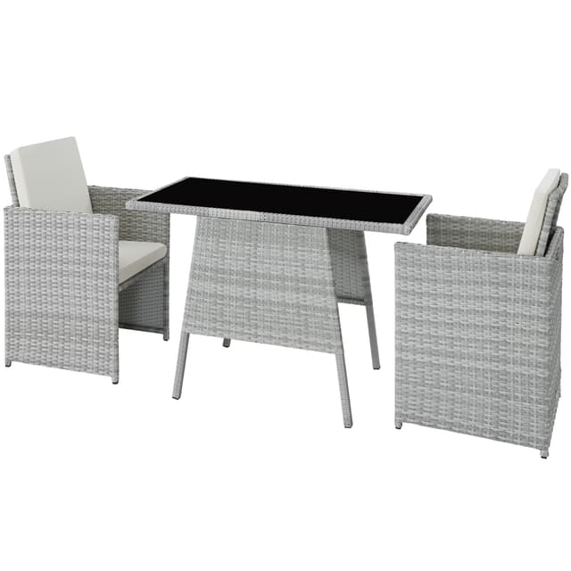 Tämä kompakti Lausanne-rotanista valmistettu tectaken rottinkipuutarhakalustesarja on pieni mutta täydellisen muotoinen. Tämä ulkokalustesarja on erittäin käytännöllinen tinkimättä muotoilusta ja mukavuudesta, tämä setti on upea näkymä kotisi ulkopuutarhassa. Sarjan korkealaatuinen, polyrottingista valmistettu punonta luo tyylikkään kuvion, joka näyttää upealta kotonasi. Runko on valmistettu kestävästä, pulverimaalatuista teräksestä. Ihanteellinen pienille parvekkeille ja terasseille: yksittäiset elementit voidaan käytännössä työntää yhteen, mikä on ihanteellista säilytystä varten. Pehmeät tyynyt ovat irrotettavat ja helposti puhdistettavat. Yksinkertaisesti täydellinen ulkoilmaruokailuun toisen puoliskosi kanssa: tämä viihtyisä, rottinkirattaista valmistettu Lausanne-puutarhakalustesarja Tectakelta.