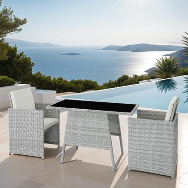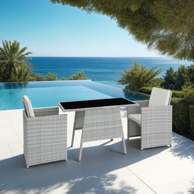 Rottinki-puutarhakalustesarja Lausanne (2 tuolia ja 1 pöytä)