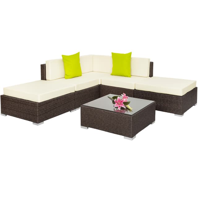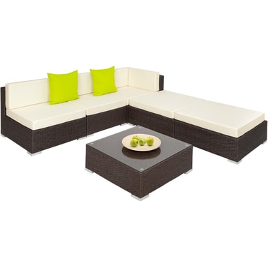 Tectake-polyrottinki-puutarhakalustesarjaa voidaan käyttää monipuolisesti puutarhassa tai sisätiloissa, ja se parantaa visuaalisesti puutarhaa, terassia, kasvihuonetta tai olohuonetta. Tyylikäs pöytä on täydellinen paikka juomille ja välipaloille, joten voit nauttia rennosta ruokailusta ulkona. Mukavissa tuoleissa on paksut tyynyt, jotka tarjoavat varmasti rentouttavia tunteja ystävien ja perheen kanssa. Puutarhakalustesarja tekee vaikutuksen paitsi tyylikkäällä ulkonäöllään myös pitkällä käyttöiällään polyrottinkikudoksen ansiosta. Alhaisen painon ansiosta huonekaluja on helppo kuljettaa ja sijoittaa uudelleen haluamaasi muotoon. Pöytien pöytätaso on valmistettu lasista, mikä antaa sille tyylikkään ulkonäön ja tekee siitä helposti puhdistettavan. Mukavat, polyesteristä valmistetut istuintyynyt on väriltään täydellisesti sovitettu yhteen rottinkisarjan kanssa, ja niiden selkäpuolella on vetoketju, joka mahdollistaa helpon puhdistuksen. Pehmusteiden suojaamiseksi vedeltä pinta on kyllästetty, joten lika- ja vesipisarat yksinkertaisesti vierivät pois. Erilaisten yksittäisten elementtien avulla puutarhakalustesarja voidaan järjestää toiveidesi ja tarpeidesi mukaan. Ulkokalustesarjan lisävarusteisiin kuuluu jopa kaksi lisätyynyä, jotka parantavat sen ulkonäköä entisestään. Tilaa tämä upea rottinkipuutarhakalustesarja Tectakelta kotiisi ja tee terassistasi tai puutarhastasi ulkoilmaolohuone.