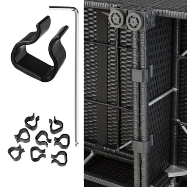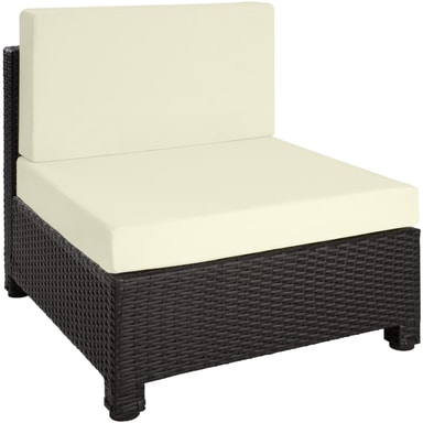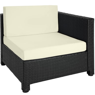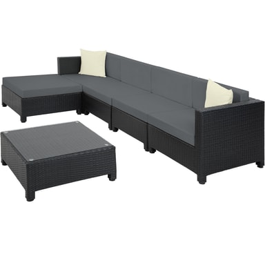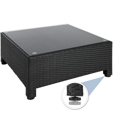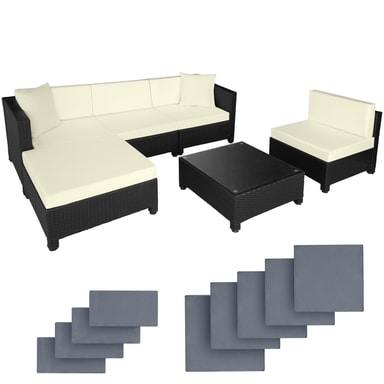 Tämä ulkokäyttöön tarkoitettu rottinkipuutarhakalustesarja, joka koostuu pöydästä, sohvasta ja nojatuolista, on valmistettu alumiinista ja päällystetty polyrottingilla. Tämä johtaa pieneen painoon vakaudesta tinkimättä. Lasista valmistettu pöytäpinta näyttää erittäin tyylikkäältä ja on helppo puhdistaa. Polyesteristä valmistetut erittäin mukavat istuintyynyt on väriltään täydellisesti sovitettu mustaan rottinkisarjaan, ja niiden selkäpuolella on vetoketju, joka mahdollistaa helpon puhdistuksen. Pehmusteiden suojaamiseksi kosteudelta pinta on kyllästetty. Näin lika ja vesi tippuvat helposti pois (katso kuva). Erilaisten yksittäisten elementtien avulla setti voidaan järjestää toiveidesi mukaan. Tilaa tämä kaunis lounge-puutarhakalustesarja tectakelta ja kohenna näkyvästi puutarhaasi tai terassiasi.