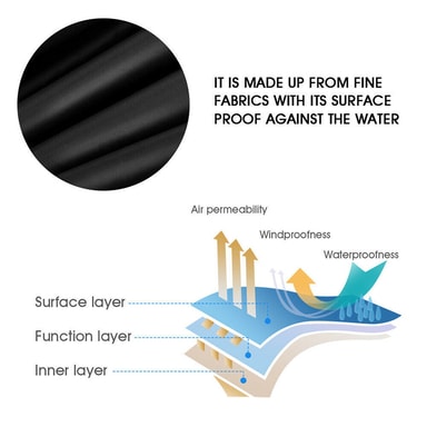 Säänkestävä suoja: Tämä kansi tarjoaa poikkeuksellisen suojan sateelta, lumelta, UV-säteiltä ja pölyltä pitäen terassilämmittimen puhtaana ja kuivana ympäri vuoden.