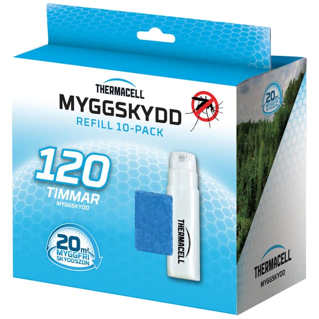 Täyttöpakkaus Thermacell-hyttyskarkottimelle sisältää 10 nestekaasusäiliötä ja 30 karkotetyynyä. Pakkaus riittää noin 120 tunniksi ja luo 20 m2 kokoisen alueen, jonne hyttyset eivät tule.Tutustu ominaisuuksiin