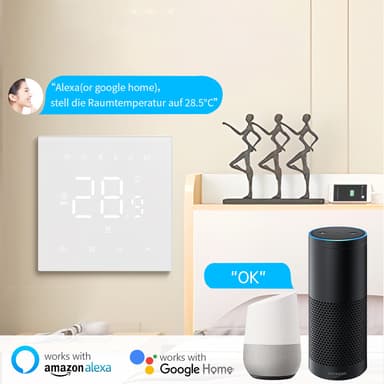 Älykäs ohjaus: Hallitse vaivattomasti kotisi sähköistä lattialämmitystä WiFi-yhteydellä varustetulla älytermostaatillamme. Ohjaa lämpötilaa mistä tahansa Tuya-sovelluksen avulla älypuhelimellasi tai tabletillasi. Nauti lämmitysaikataulun säätämisen mukavuudesta ollessasi töissä, lomalla tai vain rentoutuessasi sohvalla. Intuitiivinen sovellusliittymä mahdollistaa lämmitysjärjestelmäsi helpon ohjelmoinnin ja valvonnan, mikä takaa optimaalisen mukavuuden ja energiansäästön. Yhteensopiva ääniohjausjärjestelmien kanssa handsfree-käyttöä varten.
