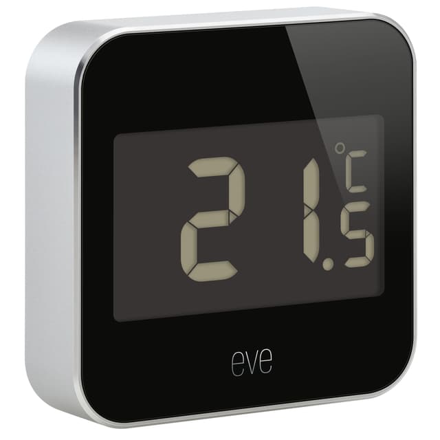 Eve Degree -lämpömittari mahdollistaa ulkoilman lämpötilan, ilmankosteuden ja ilmanpaineen tarkistamisen älylaitteiden välityksellä, vaikka sängystä tai sohvalta käsin. Elegantin muotoilun, käyttäjäystävällisten toimintojen sekä säänkestävän eloksoidun alumiinirungon ansiosta Eve Dergee -on oivallinen valinta jokaiseen kotiin. Laite voidaan yhdistää HomeKit-verkkoon, joka mahdollistaa entistä laajemmat käyttöominaisuudet.