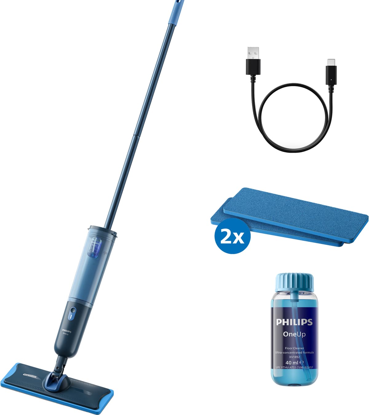 Koe lattiasiivouksen helppous ilman hankalia vaiheita kuten ämpäreiden raahaamista, mopin puristamista tai huuhtelua. Philips OneUp -sähkömoppi yksinkertaistaa jokaisen vaiheen ja tekee moppaamisesta nopean ja vaivattoman osan kotitöitäsi.