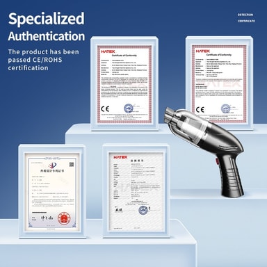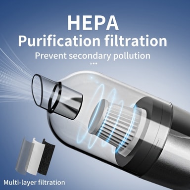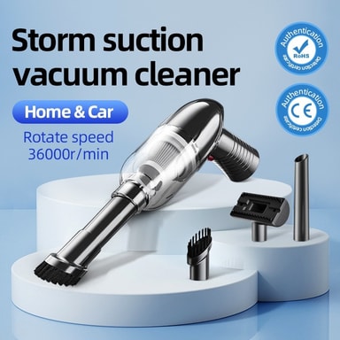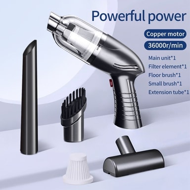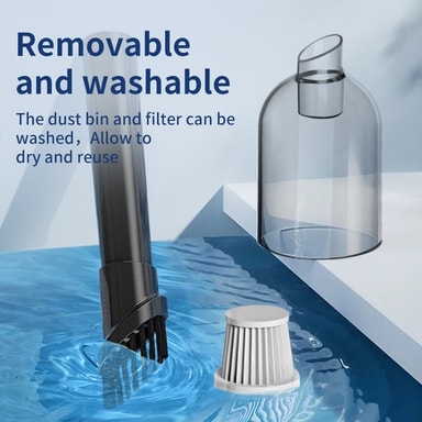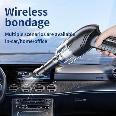 Johdoton ja kannettava: Nauti johdottoman puhdistuksen vapaudesta kannettavan autonimurimme avulla. Sen kevyt ja kompakti muotoilu mahdollistaa helpon liikkumisen ja säilytyksen. Sisäänrakennettu ladattava akku tarjoaa runsaasti käyttöaikaa perusteellisiin puhdistusistuntoihin. Ota se mukaasi minne tahansa – autostasi kotiisi – ja selvitä sotkut vaivattomasti tien päällä. Ergonominen kahva varmistaa mukavan otteen, kun taas kompakti koko mahdollistaa kätevän säilytyksen autosi tavaratilassa tai hansikaslokerossa. Tämä imuri sopii täydellisesti nopeisiin siivouksiin, mikä varmistaa, että autosi pysyy tahrattomana missä tahansa oletkin. Johdoton muotoilu eliminoi sotkeutuneiden johtojen aiheuttaman vaivan ja tarjoaa saumattoman puhdistuskokemuksen.