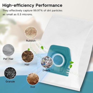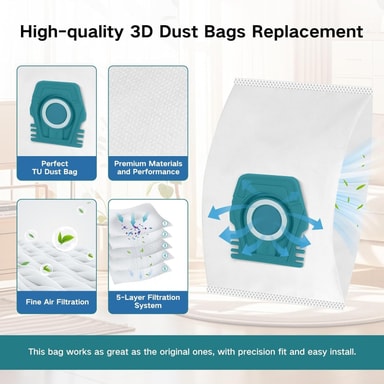 Erinomainen suodatus: Nämä pölynimurin pölypussit on valmistettu korkealaatuisesta kuitukankaasta, joka tarjoaa poikkeuksellisen suodatuksen. Edistyksellinen materiaali kerää tehokkaasti hienot pölyhiukkaset, allergeenit ja lemmikkien hilseen varmistaen puhtaamman ilman kotonasi. Nämä pussit sopivat ihanteellisesti allergikoille, sillä ne auttavat vähentämään ilmassa olevia ärsykkeitä ja edistävät terveellisempää elinympäristöä. Monikerroksinen rakenne maksimoi suodatustehokkuuden estäen pölyn pääsyn takaisin huoneeseen imuroinnin aikana. Nämä pussit ovat yhteensopivia Miele Guard L1- ja S1-sarjan pölynimurien kanssa ja tarjoavat luotettavan ja tehokkaan ratkaisun tahrattoman kodin ylläpitämiseen.