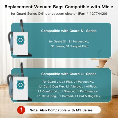 Tarkka istuvuus: Nämä pölynimurin pölypussit on suunniteltu tarkkaan ja helppoon asennukseen, ja ne ovat täysin yhteensopivia Miele Guard L1- ja S1-sarjan pölynimureiden kanssa. Pussit sopivat saumattomasti pölynimurilokeroon varmistaen optimaalisen suorituskyvyn ja estäen imutehon heikkenemisen. Käyttäjäystävällinen muotoilu mahdollistaa nopean ja vaivattoman vaihdon, mikä säästää aikaa ja vaivaa. Nämä pussit on suunniteltu erityisesti vastaamaan alkuperäisiä spesifikaatioita, mikä takaa turvallisen ja luotettavan istuvuuden. Nauti tasaisesta ja tehokkaasta siivouskokemuksesta näillä täydellisesti istuvilla pölynimurin pölypusseilla, jotka ovat yhteensopivia mallien, kuten Guard L1 Cat & Dog Flex ja Guard S1 Junior, kanssa.
