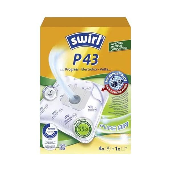 - Sopivuus: Progress, Electrolux och Volta-pölynimurit - Pakkauksessa: 4 pölypussia P43 ja 1 suodatin