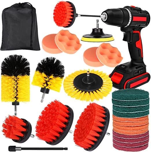 Borstsetet innehåller rengöringsborstar, skursvampar, rengöringssvampar etc. Koppla ihop dem med din borr för att bli ett kraftfullt rengöringsverktyg, rengör din bil effektivt och på djupet.