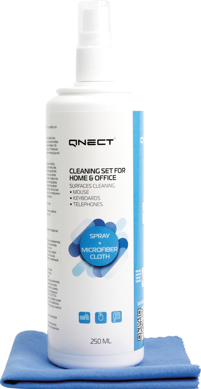 Qnect Cleaning puhdistussuihke ja puhdistusliina toimistoon (250 ml)