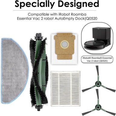 Kustannustehokas ylläpito: Sen sijaan, että ostaisit yksittäisiä varaosia, tämä kattava sarja tarjoaa kustannustehokkaan ratkaisun iRobot Roomban ylläpitoon. Vaihtamalla kaikki tarvittavat komponentit kerralla voit säästää aikaa ja rahaa varmistaen samalla, että imurisi toimii huipputeholla. Näissä varaosissa käytetyt korkealaatuiset materiaalit takaavat pitkäikäisyyden ja luotettavuuden tarjoten erinomaisen vastineen sijoituksellesi. Tämä sarja on yhteensopiva iRobot Roomba Y0140, Y0110, Q011, Q0520 ja Q0120 mallien kanssa.