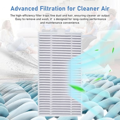 Parannettu puhdistusteho: Mukana tuleva korkealaatuinen pääharja lakaisee tehokkaasti lian ja roskat erilaisilta lattiatyypeiltä, kun taas sivuharjat ulottuvat reunoille ja nurkkiin perusteellista puhdistusta varten. Suodattimet keräävät hienoja hiukkasia ja allergeeneja parantaen ilmanlaatua. Moppityynyt poistavat tehokkaasti tahrat ja roiskeet ja jättävät lattiasi säihkyvän puhtaiksi. Vaihtamalla nämä osat säännöllisesti huomaat merkittävän parannuksen robotti-imurisi puhdistuskyvyssä, mikä varmistaa puhtaamman ja terveellisemmän kotiympäristön. Tämä pakkaus on suunniteltu maksimoimaan Lefant-robotti-imurisi puhdistuspotentiaalin.