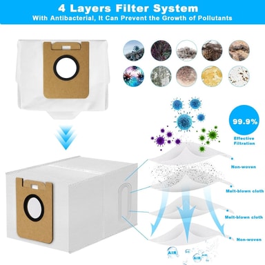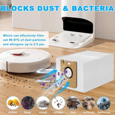 Tehokas pölynkeräys: Nämä pölypussit on suunniteltu keräämään tehokkaasti pölyä, likaa ja roskia Dreame D10 Plus RLS3D -robotti-imuristasi. Ne auttavat pitämään kotisi puhtaampana ja terveellisempänä, vähentäen allergeenien ja pölypunkkien määrää ilmassa. Pölypussien tiivis rakenne estää pölyn leviämisen takaisin huoneilmaan, mikä on erityisen tärkeää allergikoille ja astmaatikoille. Nauti siististä ja raikkaasta kodista näiden laadukkaiden pölypussien avulla, jotka on suunniteltu juuri sinun robotti-imurillesi.