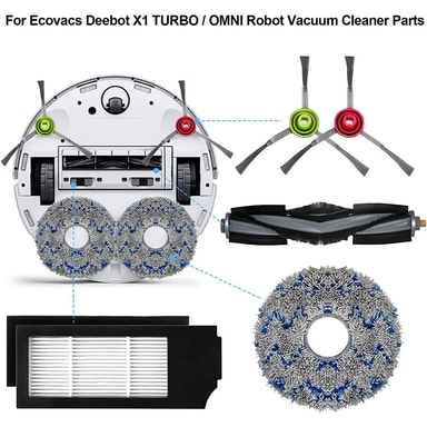 Kattava Vaihtosarja: Tämä sarja tarjoaa täydellisen valikoiman varaosia Ecovacs Deebot X1 Omni, X1 e Omni, X1 Turbo, T10 Turbo ja T10 Omni robotti-imureillesi. Se sisältää olennaisia komponentteja, kuten pääharjan, HEPA-suodattimet, sivuharjat ja moppausliinat, varmistaen, että imurisi toimii huipputeholla. Näiden osien säännöllinen vaihtaminen auttaa ylläpitämään optimaalista puhdistustehoa ja pidentää robotti-imurisi käyttöikää.