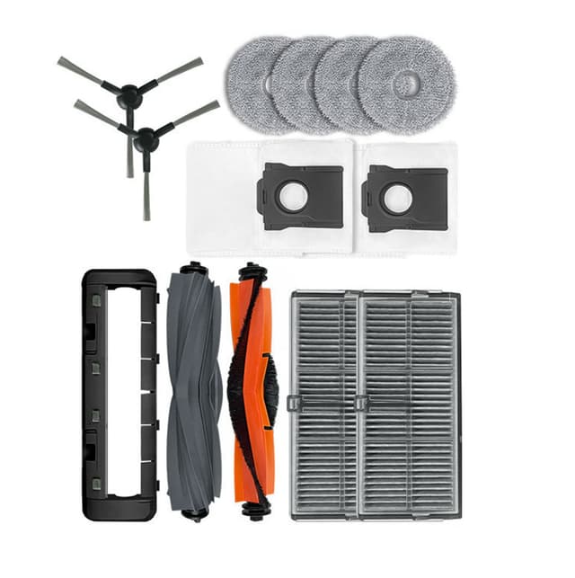 13 varaosaa: Tämä lisävarustesarja sisältää harjat, suodattimet, pölypussit. pyyhi vaatteet pölyltä ja hiukkasilta, mopit ja puhdistusvälineet.