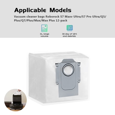 Kestävät pölynimuripussit laadukkaasta kuitukankaasta, sopivat Xiaomi Roborock S7 Maxv Ultra / S7 Pro Ultra / Q5 / Q5 Plus / Q7 / Q7 Plus / Q7 MAX / Q7 Max Plus robottipölynimuriin.