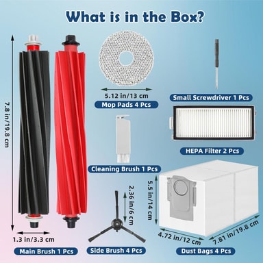 Helppo huolto ja vaihto: Pidä imuri toiminnassa tämän kätevän lisävarustesarjan avulla. Säännöllinen osien, kuten suodattimien, harjojen ja moppaustyynyjen vaihto auttaa ylläpitämään optimaalista imutehoa ja puhdistustehokkuutta, mikä pidentää Roborock Qrevo Masterin käyttöikää.