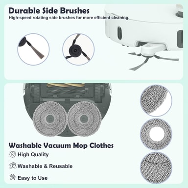 Kattava vaihtosarja: Tämä lisävarustesarja tarjoaa täydellisen sarjan varaosia Dreame-robotti-imurille varmistaen optimaalisen suorituskyvyn ja pitkän käyttöiän. Se sisältää tärkeimmät komponentit, kuten pääharjan, suodattimen, sivuharjat, moppityynyt ja pölypussit, jotka kaikki on suunniteltu toimimaan saumattomasti laitteesi kanssa. Näiden osien säännöllinen vaihtaminen auttaa ylläpitämään puhdistustehokkuutta ja pidentää robotti-imurisi käyttöikää.