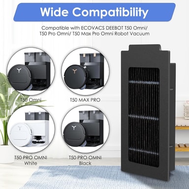Helppo asennus ja huolto: Nämä HEPA-suodattimet, jotka ovat yhteensopivia Ecovacs DEEBOT T50 Omnin kanssa, on suunniteltu vaivattomaan asennukseen, ja ne voidaan helposti vaihtaa sekunneissa. Erityisiä työkaluja tai teknistä asiantuntemusta ei tarvita. Poista vain vanha suodatin ja aseta uusi tilalle. Säännöllinen huolto, kuten suodattimien puhdistus tai vaihto, on välttämätöntä robotti-imurin suorituskyvyn ylläpitämiseksi ja sen käyttöiän pidentämiseksi. Nämä suodattimet on suunniteltu helppoon pääsyyn ja vaihtoon, mikä tekee huollosta helppoa. Noudattamalla suositeltua vaihtoaikataulua voit varmistaa, että Ecovacs DEEBOT T50 Omni jatkaa poikkeuksellisen puhdistustehon tuottamista pitäen lattiasi tahrattomina ja ilmasi puhtaana. Näiden suodattimien käyttäjäystävällinen muotoilu tekee niistä kätevän valinnan kaikille käyttäjille. Nämä suodattimet on suunniteltu tekemään huollosta mahdollisimman yksinkertaista.