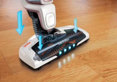 BrushRollClean -teknologia: BRC-teknologian ansiosta sinun tarvitsee vain painaa suulakkeessa olevaa painiketta jalallasi ja kapea terä leikkaa harjan ympärille kiertyneet hiukset ja kuidut pieniksi palasiksi. Leikatut palaset imeytyvät pölysäiliöön. Helppo ja hygieeninen tapa säilyttää imurin tehokkuus.