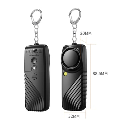 • Henkilökohtainen turvahälytin paristolla - 130 dB:n voimakas hätähälytys avaimenperä LED-valolla Musta