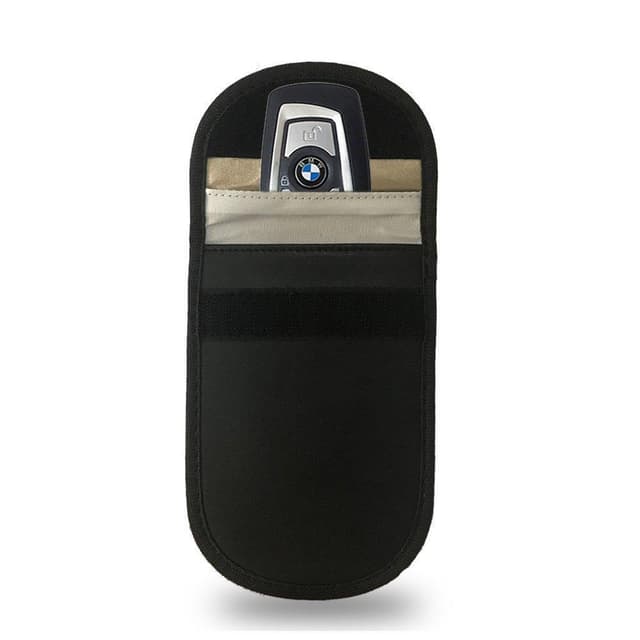 Kätevä pieni laukku, jossa on käytännöllinen kaksoistoiminto: Sen ns. ""keyless-toiminto"" estää asiattomilta pääsyn avaimen tietoihin ja estää näin auton varastamisen ilman autoon murtautumista tai ilman avaimia. Taaimmainen (sisempi) tasku on nimittäin varustettu signaalinestäjällä, joka suojaa avaimesi. Etummainen tasku vähentää kännykästä tulevaa säteilyä 90 % ja pienentää näin mahdollisia terveysriskejä.