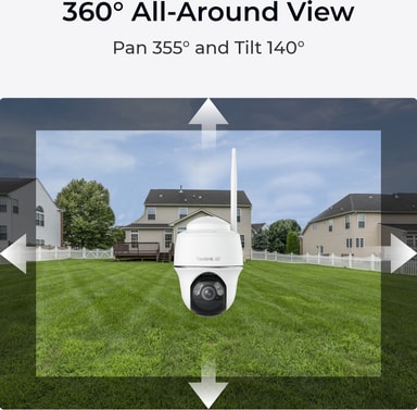Tämän kameran 360° panoraama- ja kallistusnäkymäominaisuuksien ansiosta mikään osa kiinteistöstäsi ei jää kameran katseelta piiloon.