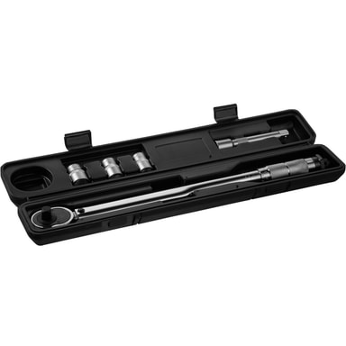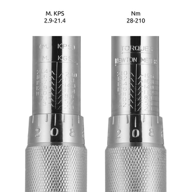 Kohokohdat • 5-piece torque wrench set for maintenance and repair work • Easy and precise adjustment by turning the handle • Double reading scale in Nm and M-Kgs • Twistable lock after setting the desired torque • Switch lever for right and left rotation • Practical hanging option at the end of the handle • Sockets with ball lock • Light and robust hard case for convenient transportation • Färg: hopea
