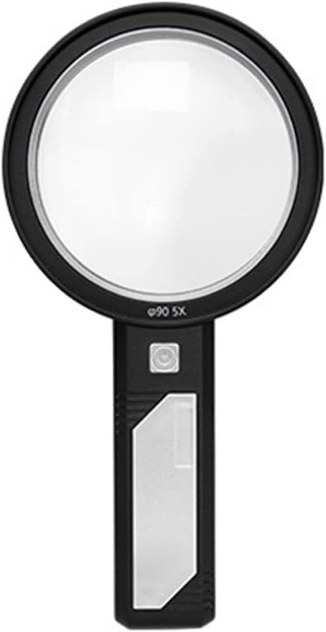 Suurennuslasi, jossa on ensiluokkainen optinen lasilinssi ja LED-valot, täydellinen helpottamaan lukemista ja kirjojen, lehtien ja esineiden pienten yksityiskohtien näkemistä jopa hämärässä. Voit valita 5x (1 linssi) ja 10x (2 objektiivia) suurennuksen välillä.