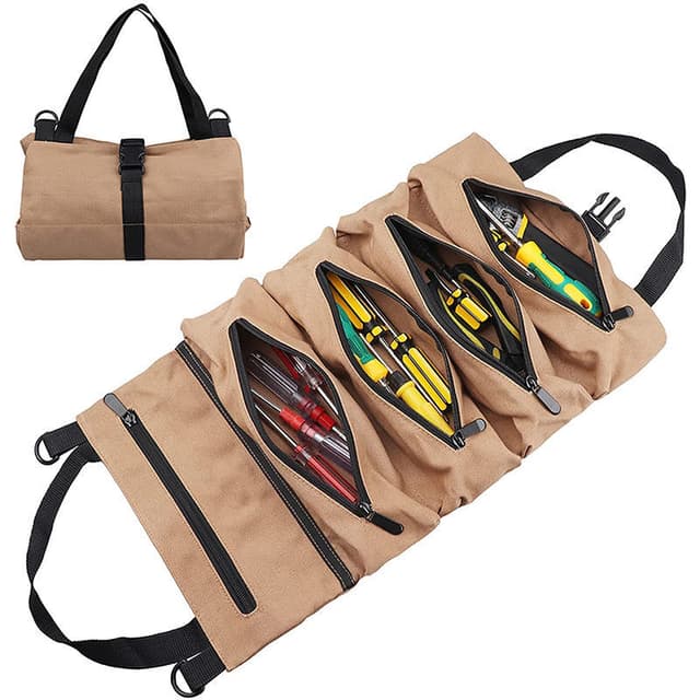 Työkalulaukussa on 5 vetoketjullista taskua, jotka sopivat täydellisesti paalujen, ruuvimeisselien, hylsyjen, rengasmittareiden ja muiden työkalujen järjestämiseen. Helppo asentaa autoon, joten pääset nopeasti ja helposti käsiksi työkaluihin ja pieniin lisävarusteisiin.
