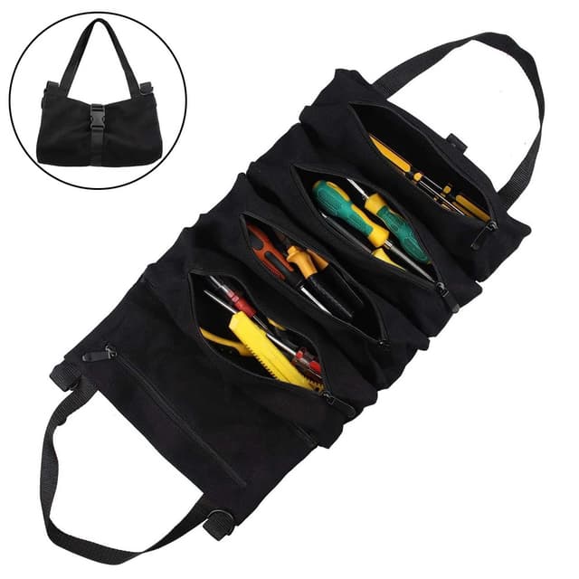 Työkalulaukussa on 5 vetoketjullista taskua, jotka sopivat täydellisesti paalujen, ruuvimeisselien, hylsyjen, rengasmittareiden ja muiden työkalujen järjestämiseen. Helppo asentaa autoon, joten pääset nopeasti ja helposti käsiksi työkaluihin ja pieniin lisävarusteisiin.