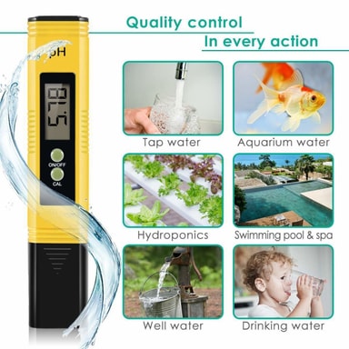 Digitaalinen pH-mittari taskukokoisena: Täydellinen pH-arvon testaamiseen uima-altaasta, akvaariosta, kylpylässä tai ruuan ja juoman teko vedestä. pH-mittarin mittaa erittäin tarkasti ja sen avulla on helppo saavuttaa ihanteellinen pH-tasapaino.