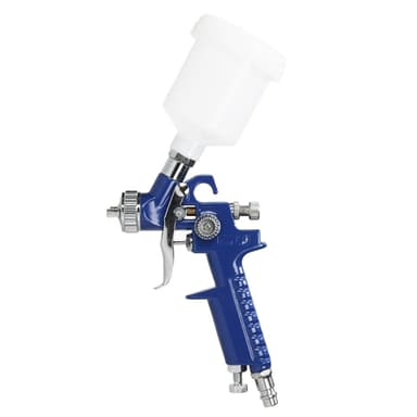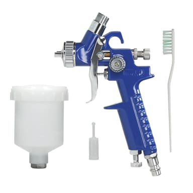 Toimituksen laajuus:1 x HVLP maaliruiskupistooli 0.8mm + 1 x 1.0mm suutinsarja1 x puhdistusharja1 x muovimuki kierrekorkilla 100 mlTekniset tiedot ruiskupistooli:Tulopaine noin 3 - 4 barSuuttimen koko 0,8 mmIlman kulutus 80-150 l/min