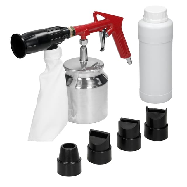 - Hiekkapuhalluspistooli pienempiin sovelluksiin ja valikoivaan käsittelyyn, esim. maalinpoistoon, maalinpoistoon, ruosteenpoistoon, puhdistukseen, pintojen puhdistukseen.