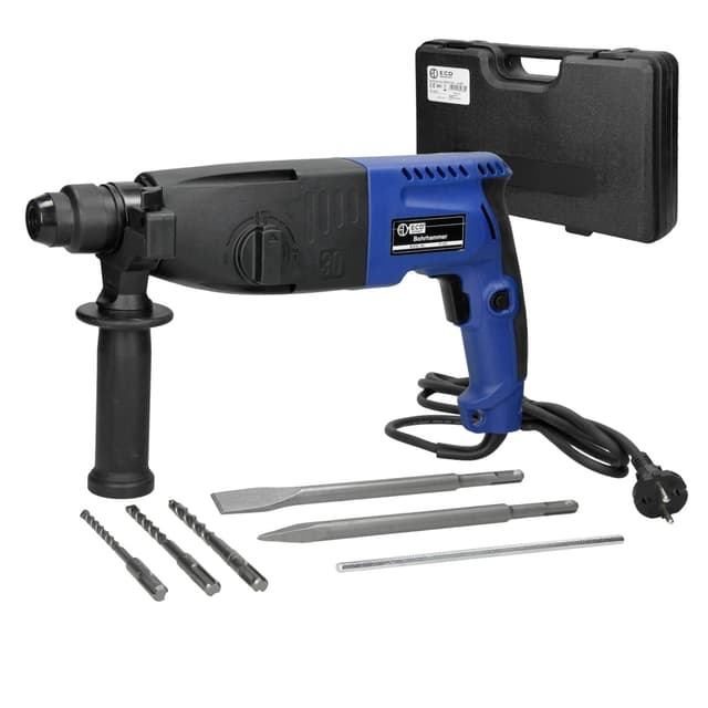Tekniset tiedot: Jännite: 230 V / 50 Hz Teho: 800 wattia Tyhjäkäyntinopeus: 0-780 /min Iskun taajuus: 0-3900/min Yksittäisen iskun energia: 3 joulea Porauskapasiteetti betoniin: 30 mm Porauskapasiteetti teräkseen: 13 mm Porauskapasiteetti puuhun: 30 mm Kiinnitys: SDS-Plus Oikean/vasemman käden kierto. Kaapelin pituus: Noin 2 m Paino: noin 5,5 kg