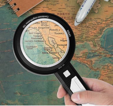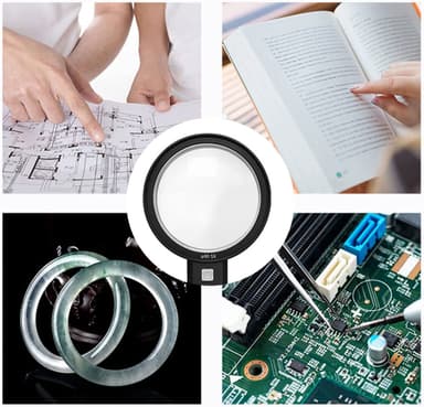 Suurennuslasi, jossa on ensiluokkainen optinen lasilinssi ja 6 valkoista LED-valoa ja 2 UV-valoa. Täydellinen helpottamaan lukemista ja kirjojen, aikakauslehtien ja esineiden pienten yksityiskohtien näkemistä jopa huonoissa valaistusolosuhteissa.