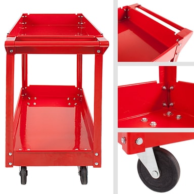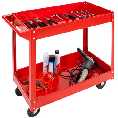 Tällä käytännöllisellä siirrettävällä 2-tasoisella työpajatyökalujen säilytysvaunulla saat työpajasi siistiksi. Kahden tilavan säilytyslokeron ansiosta kaikki on käden ulottuvilla ja nopeasti taas säilöttynä.Tutustu ominaisuuksiin