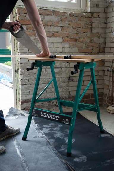 Diese praktische Klappwerkbank von VONROC ist für sämtliche Einsätze im und rund ums Haus geeignet. Nutzbar als Werkbank, Stützbock, Spanntisch oder Sägebock.Tutustu ominaisuuksiin