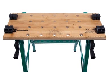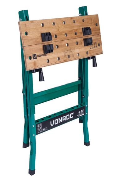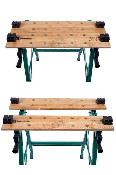 VONROC Klappwerkbank - Mit Bambus-Arbeitsplatte, maximale Belastbarkeit 150 kg