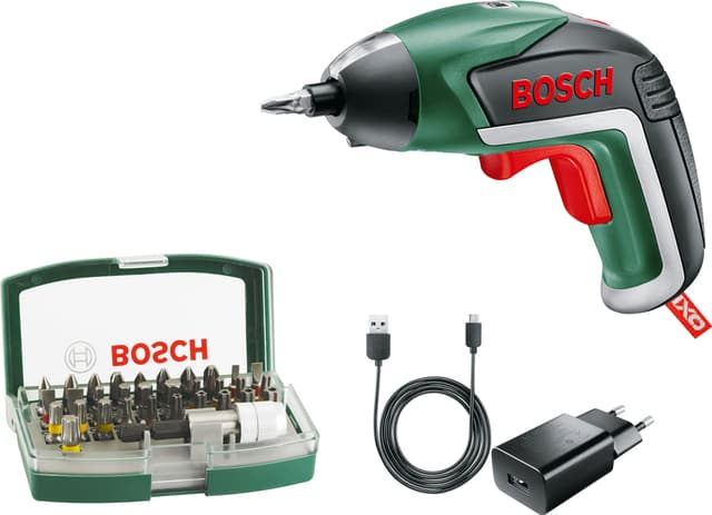 Bosch Ixo -akkuruuvinväännin sopii hyvin kodin huoltotöihin, huonekalujen kasaamiseen ja askarteluprojekteihin. Myyntipakkaukseen sisältyy 32-osainen kärkisarja värimerkatuilla kärjillä. Pienikokoisen laitteen akku latautuu kätevällä USB-laturilla.Tutustu ominaisuuksiin