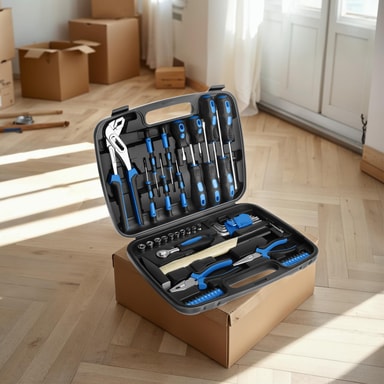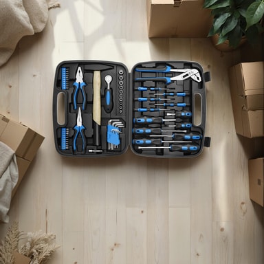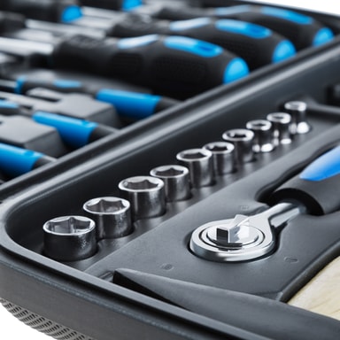 Joustosaksista pitkäkärkisiin pihdeihin: tämän tectaken työkalulaatikon avulla sinulla on aina valikoima vakiotyökaluja käsilläsi. Kestävässä työkalulaatikossa on runsaasti ruuvimeisseleitä, hylsyavaimia ja bittejä.