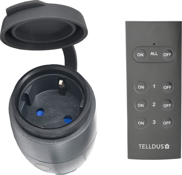 • Telldus Mini 14731 IP44 etäohjattava pistoke ulkotiloihin + kaukosäädin