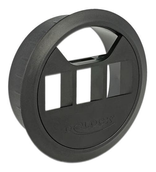 DeLOCK kehikko Keystone-liitinmoduuleille, kolme porttia, läpimitta 60 mm, syvyys 30 mm, muovia, sopii yhteen 17,2 mm leveiden moduulien kanssa, musta