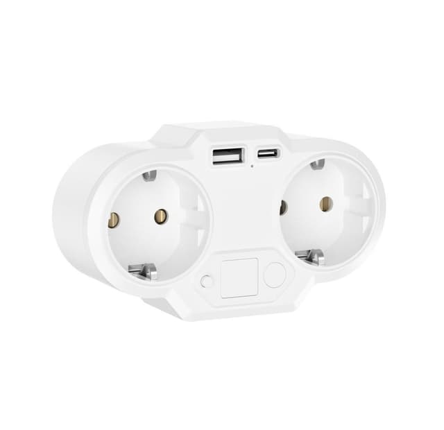 4 laitteelle: Voit liittää tähän pistorasiaan 2 tavallista sähkölaitetta, 1 laitteen USB-kaapelilla ja 1 laitteen USB-C-kaapelilla. Haaroituspistorasia voi siis täyttää neljän eri yksikön lataustarpeet samanaikaisesti.