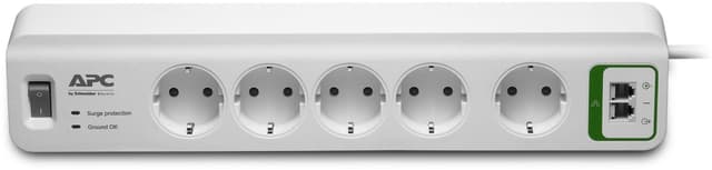 APC Essential SurgeArrest - virtapaneeli, 5 x CEE 7/4 -pistorasiaa, ylijännitesuoja puhelinkaapelille, valkoinen