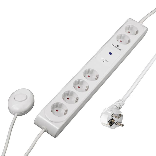 Kytkinasetuksesta riippumatta kaksi pistorasiaa toimittaa virtaa jatkuvasti - suositellaan esim. DSL-reitittimille. Erillisellä jalkakytkimellä voit helposti kytkeä 4 laitetta päälle ja pois päältä myös vaikeissa paikoissa.
