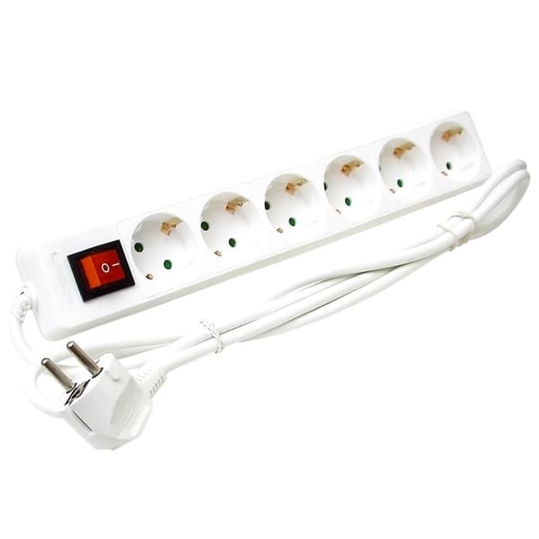 Jatkojohto 6-osainen Maadoitettu 1m virtakytkimellä - Valkoinen -1m - Kaapelityyppi: H05VV-F - Kaapelin mitat (mm2): 3G1.0 - Jännite (V): 230 - Teho (W): 3,680